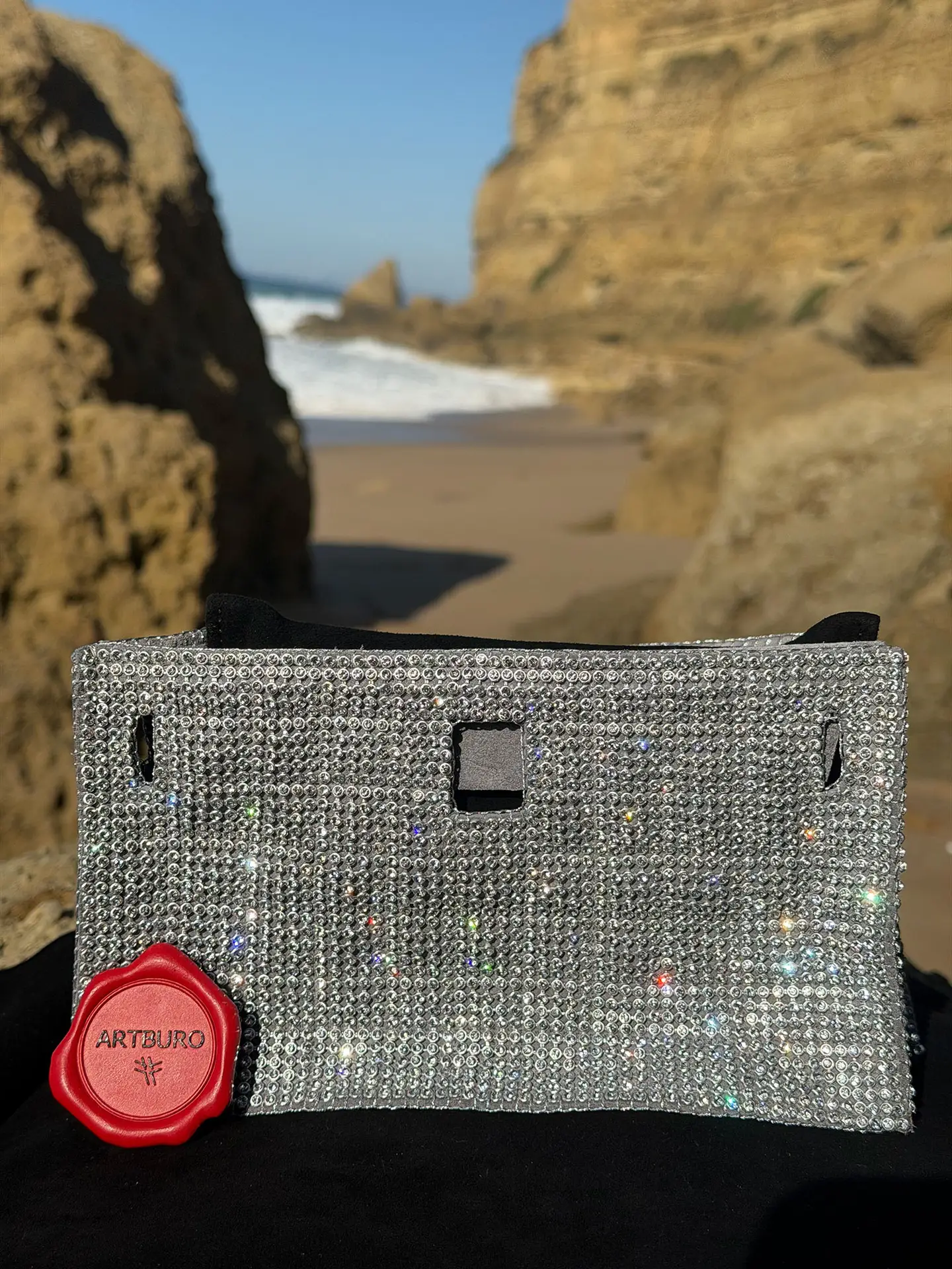 Each piece is entirely handcrafted, link by link. The chain mail behaves with textile-like fluidity while retaining the structural integrity of metal, engineered to fit the Kelly Pochette with absolute accuracy.